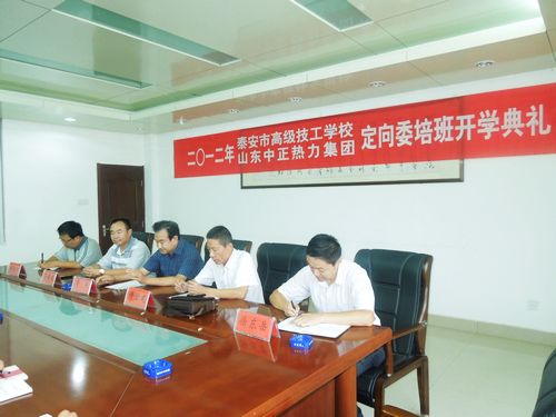 2012年9月12日上午10點(diǎn)整,山東中正熱力集團(tuán)與泰安市高級(jí)技工學(xué)校聯(lián)合辦學(xué)定向委培班開學(xué)典禮在市高級(jí)技校會(huì)議室順利舉行,由市高級(jí)技校副校長(zhǎng)徐東岳擔(dān)任主持,市高級(jí)技校黨支部副書記董軍、機(jī)械系教務(wù)處副主任張永生、集團(tuán)總經(jīng)理助理、泰安東城公司經(jīng)理許宏建、綜合部主任李體民參加了典禮。開學(xué)典禮上董書記、許經(jīng)理作了重要講話,對(duì)校企聯(lián)合辦學(xué)給予高度肯定,對(duì)第一期定向委培的同學(xué)們寄予厚望。