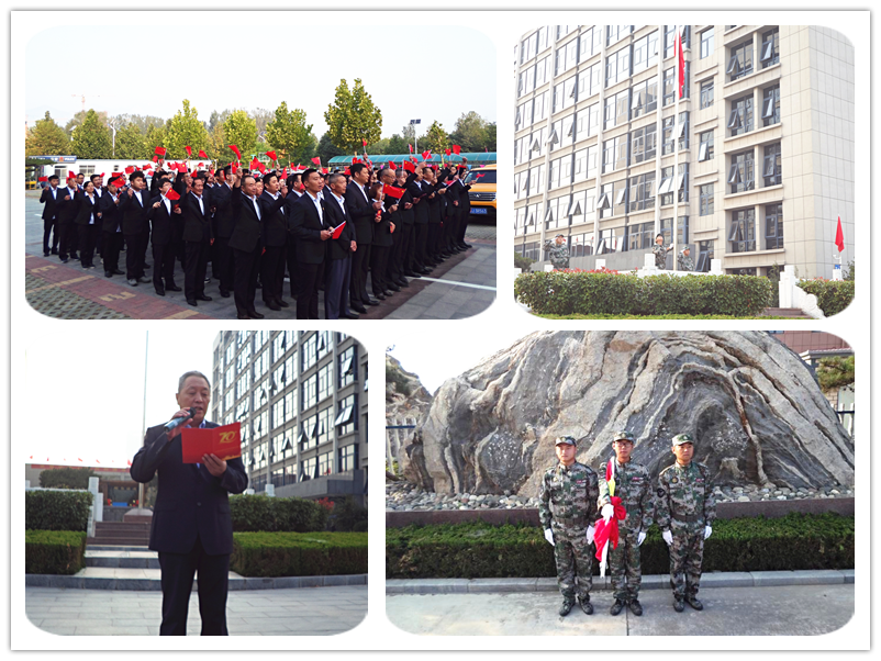 儀式上,集團(tuán)董事長(zhǎng)李廣法發(fā)表莊嚴(yán)致辭。致辭中提到:“70年,路漫漫滄桑幾度,旗獵獵風(fēng)雨如磐;70年,中華兒女砥礪奮進(jìn)、眾志成城、攻堅(jiān)克難,為民族復(fù)興奮斗;七十年,強(qiáng)國(guó)征程波瀾壯闊,華夏巨變舉世矚目。中華民族從未像今天這樣,似騰飛的巨龍,像咆哮的雄獅,以東方巨人的英姿讓世界刮目相看,贏得世界尊敬;中國(guó)人民從未像今天這樣幸福和美、揚(yáng)眉吐氣,我們對(duì)國(guó)家和民族的前途充滿信心?!?br />